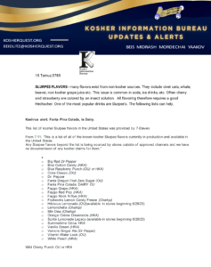 • Kosher Updates and Products